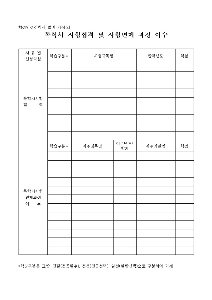 별지2-독학시험합격 및 면제과정이수