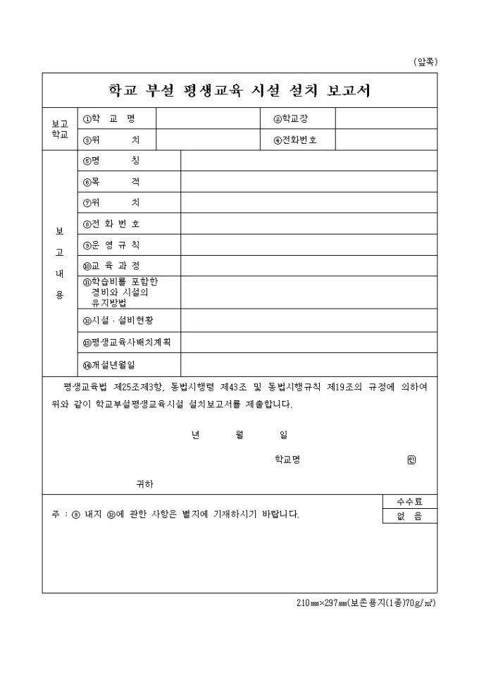 학교부설 평생교육시설 설치 보고서