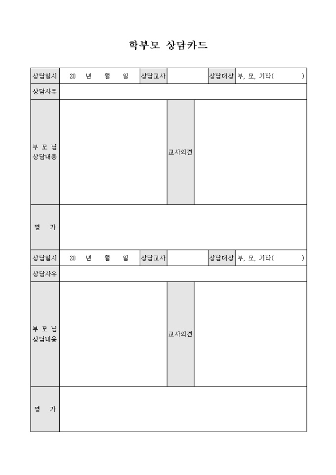학부모 상담카드