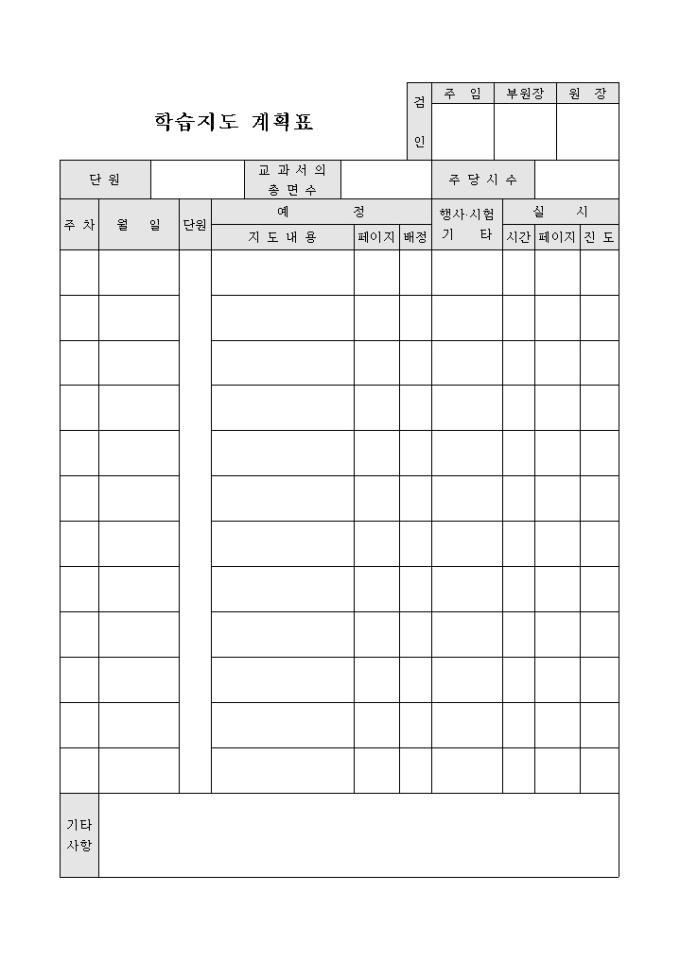9,000원/월학원강사가 강의를 위하여 학습을 계획할 때 사용할 수 있는 양식입니다.