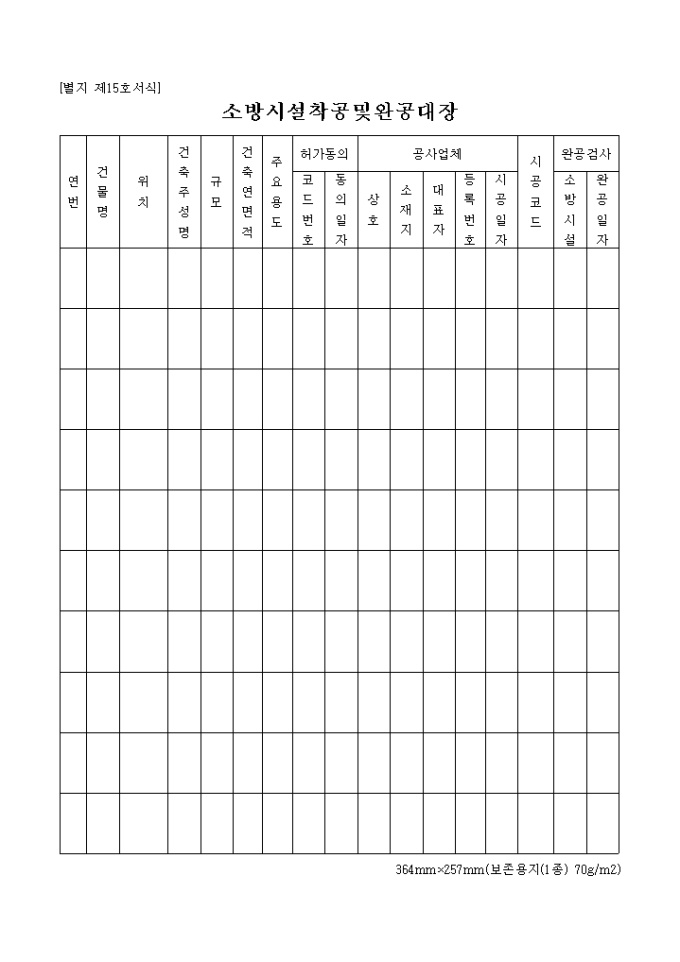 소방시설착공 및 완공대장(별지 제15호서식)