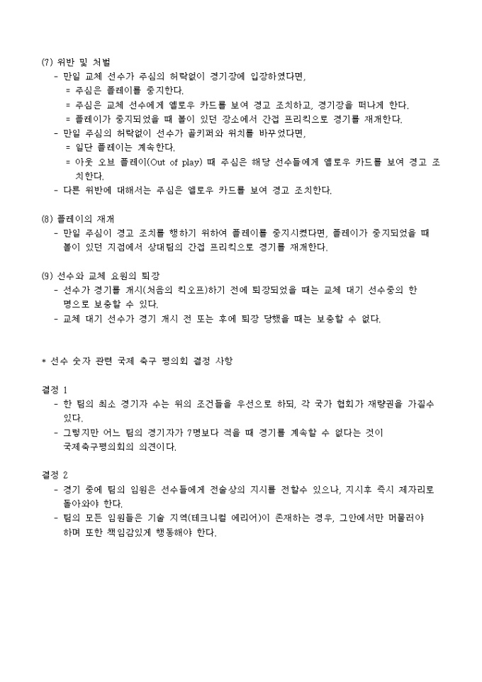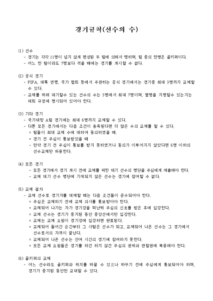 [축구경기 규칙]선수의 수(2005년도판)