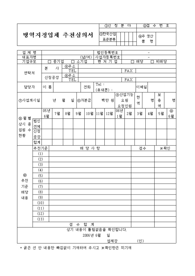 9,000원/월병역지정업체 신청시 사용되는 추천심의서 서식입니다.