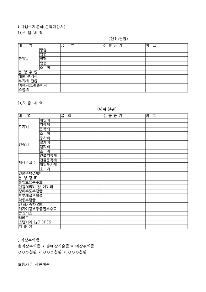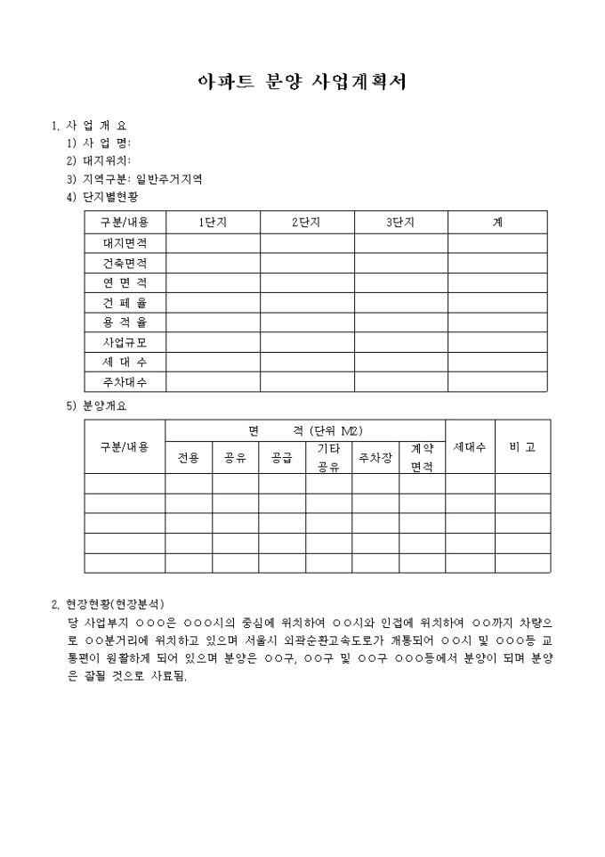 아파트 분양 사업계획서