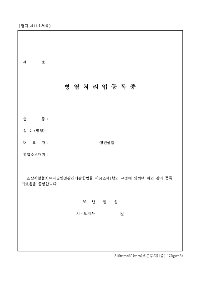 (별지 제11호서식)방염처리업등록증)