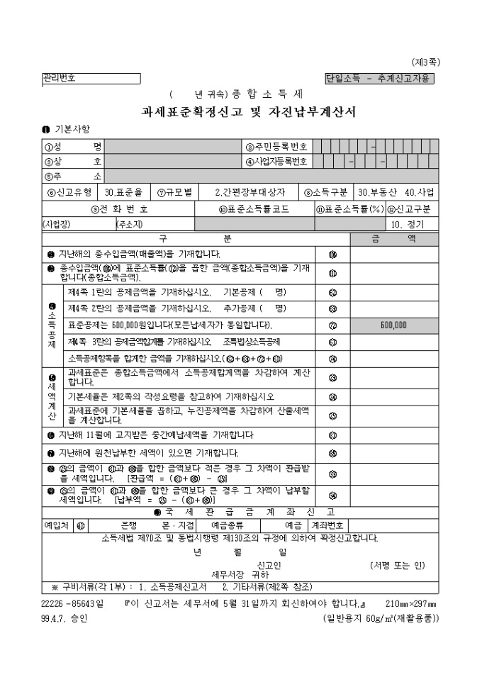 소득세법 제70조 및 동법시행령 제130조의 규정에 의하여 확정신고하실때 사용하는 양식입니다.