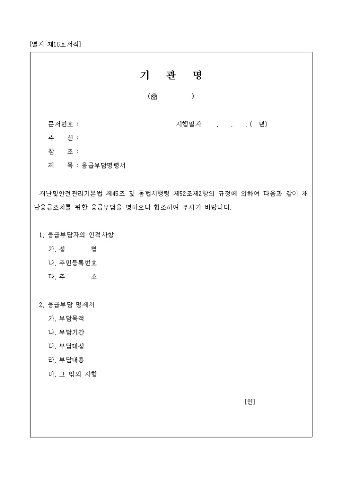 응급부담명령서(별지 제16호서식)