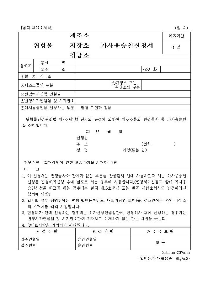 위험물 가사용승인신청서(별지 제27호서식)