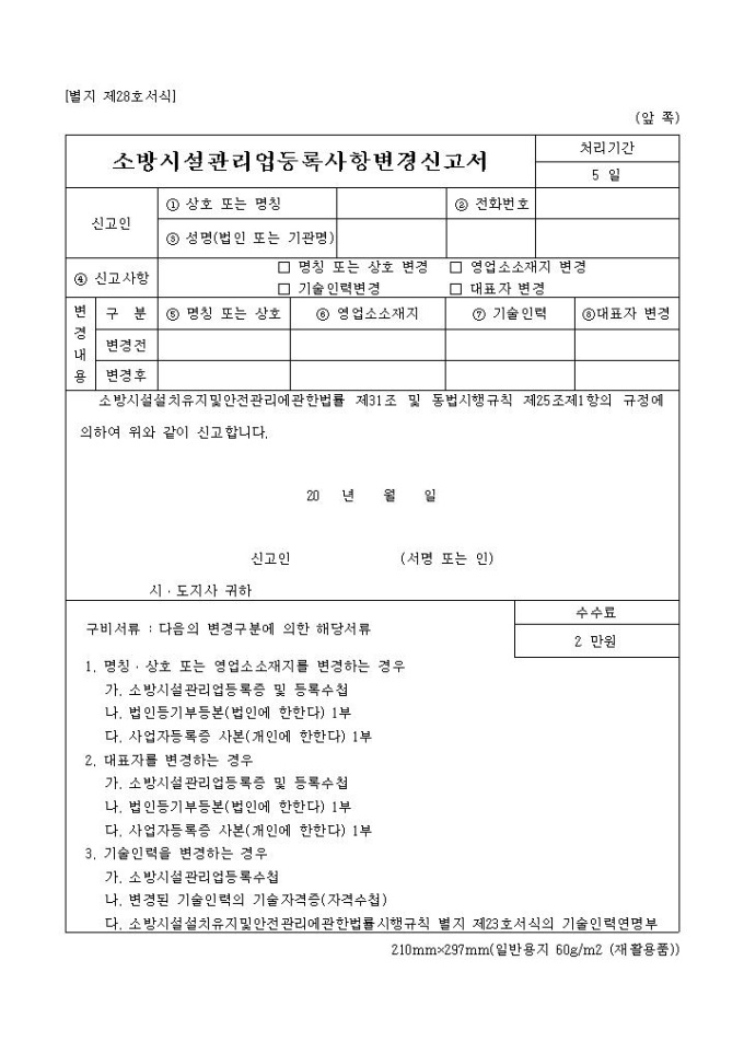 소방시설관리업등록사항변경신고서(별지 제28호서식)