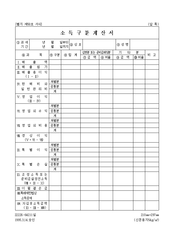 소득구분계산서 양식입니다.