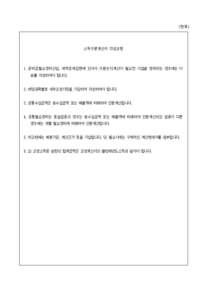 [소득구분계산서 작성요령]