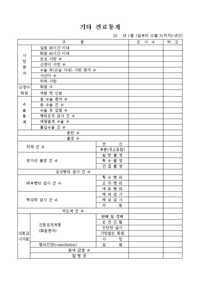 9,000원/월기타 진료통계표는 1년간 병원에서 이루어진 진료에 대한 통계를 기록, 관리할 수 있는 양식입니다. 진료구분에 따른 내용을 기록할 수 있습니다.