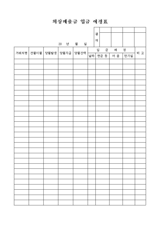 외상매출금 입금 예정표