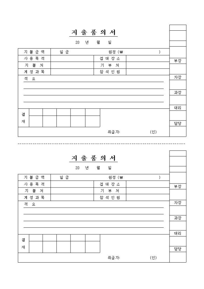 9,000원/월접대로 인한 지출내역을 품의할 때 사용하는 양식입니다.