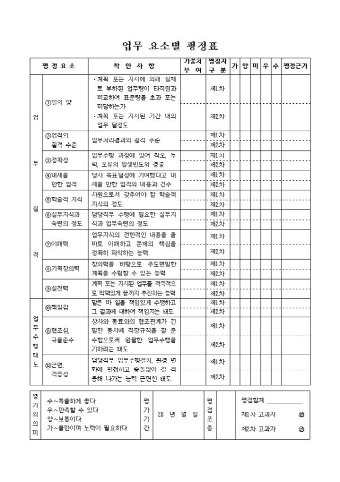 업무 요소별 펑정표