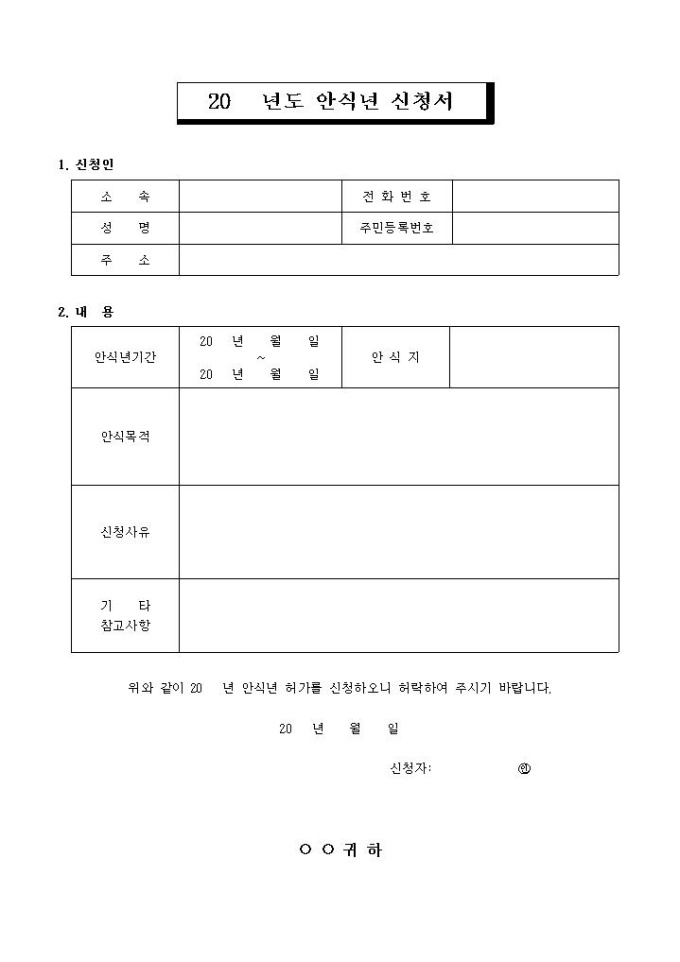 안식년 신청서