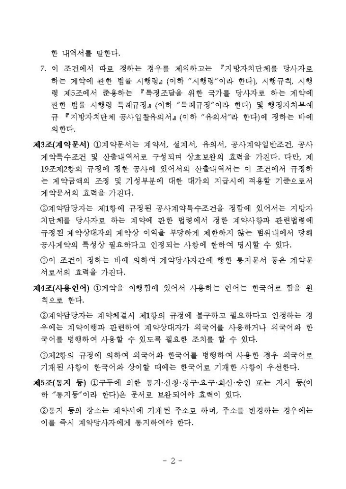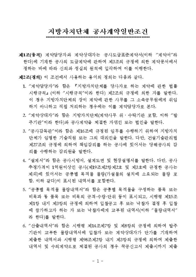 총 61조로 구성된 지방자치단체 공사계약일반조건을 기록한 양식입니다.