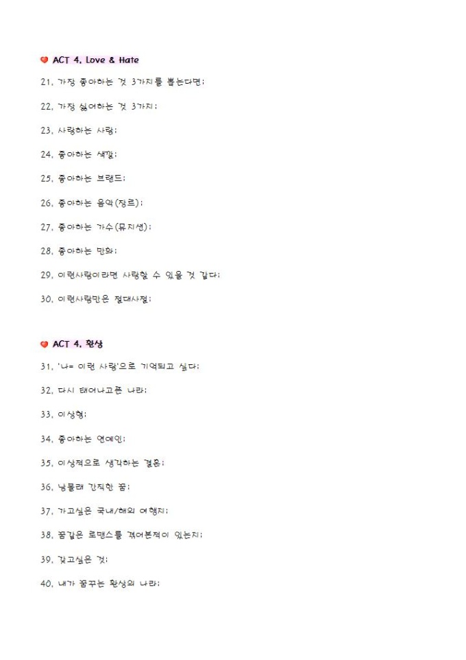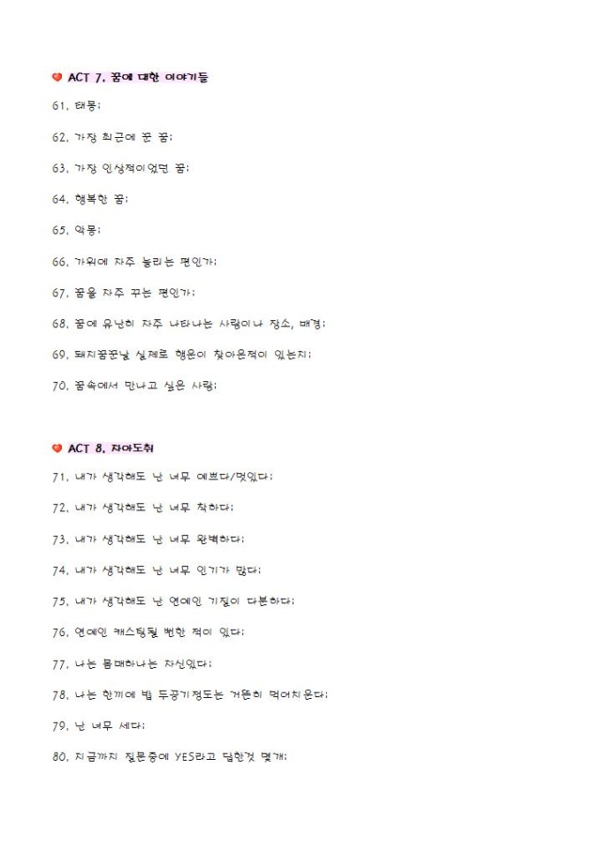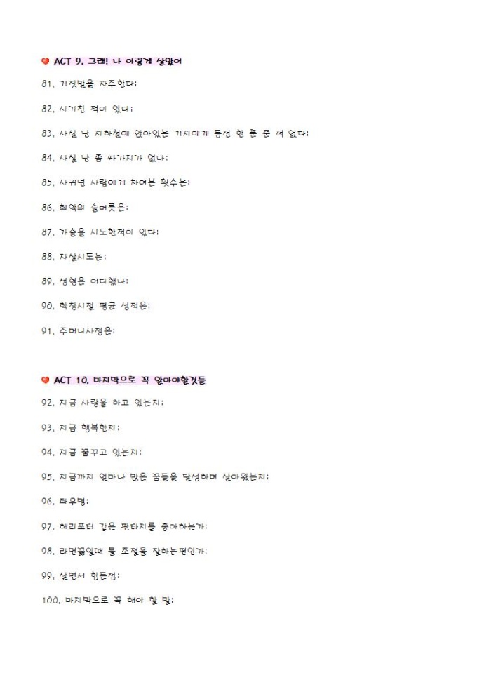 테마별 10가지스토리로 구성된 100문 100답 양식입니다.