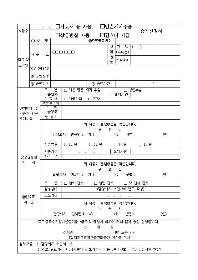 특수요양비 지급신청서