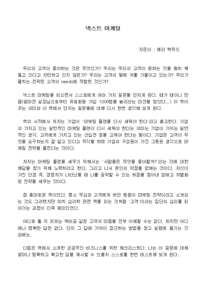 [독후감]넥스트 마케팅_해리 벡위드 지음