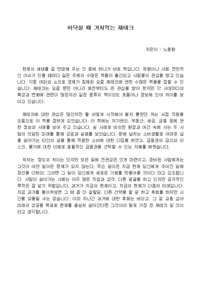 [독후감]바닥칠 때 거저먹는 재테크_노용환 지음