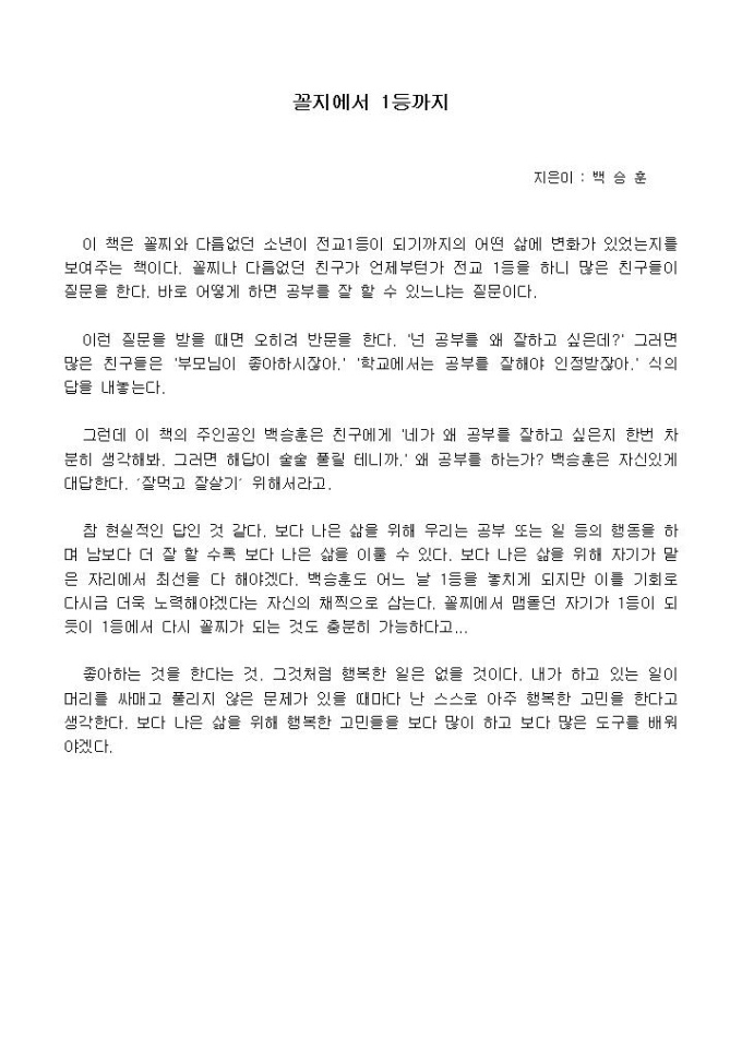 [독후감]꼴지에서 1등까지_백승훈 지음