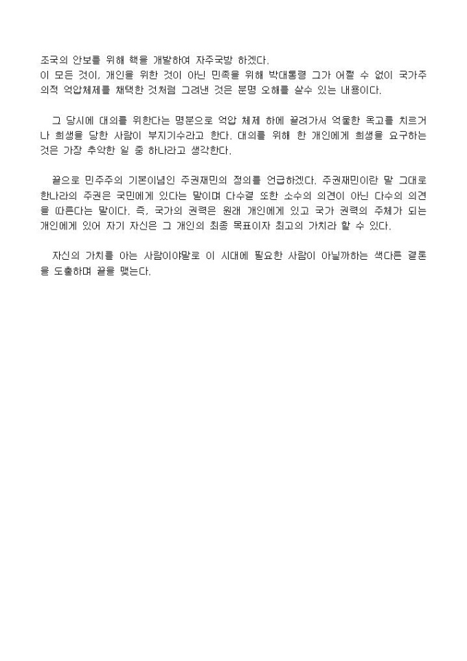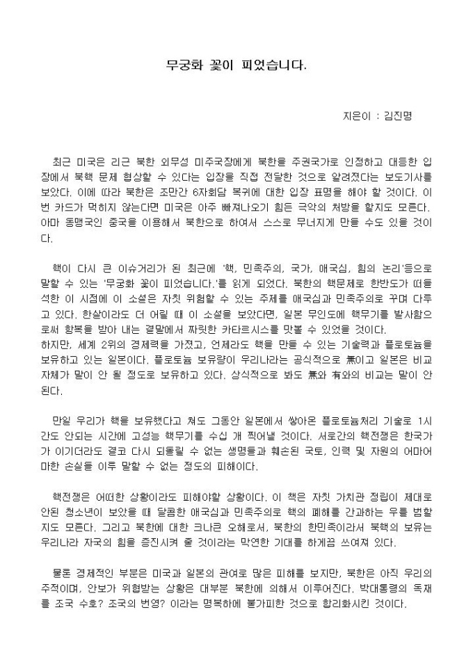 핵전쟁은 어떠한 상황이라도 피해야할 상황이다. 이 책은 자칫 가치관 정립이 제대로 안된 청소년이 보았을 때 달콤한 애국심과 민족주의로 핵의 폐해를 간과하는 우를 범할지도 모른다.