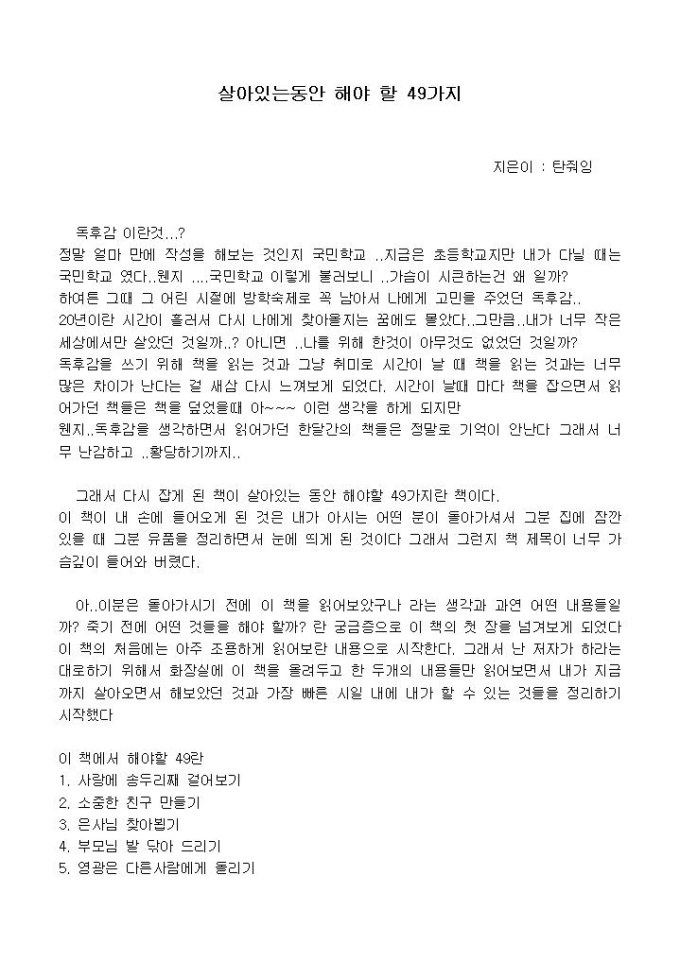 [독후감]2_살아있는 동안 꼭 해야 할 49가지_탄줘잉 지음