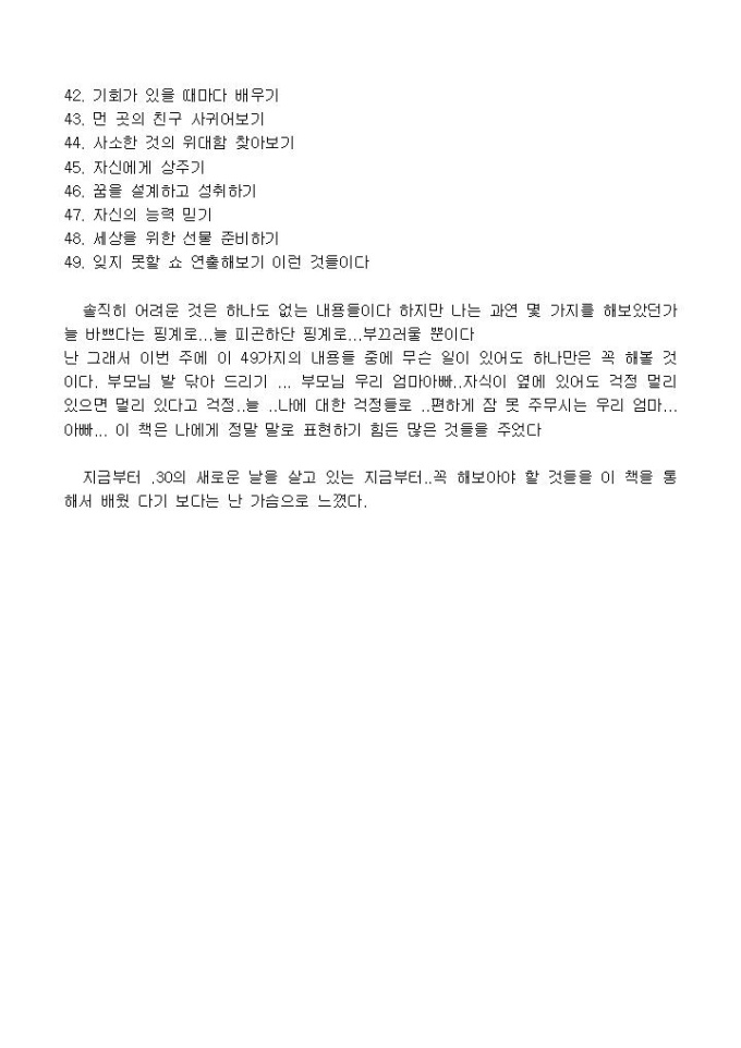 그래서 다시 잡게 된 책이 살아있는 동안 해야할 49가지란 책이다.