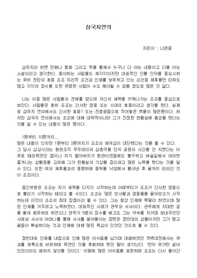나는 이중 많은 사람들의 견제를 받으며 자신의 세력을 키워나가는 조조를 중심으로 보았다. 사람들은 흔히 조조는 간사한 영웅 또는 시대의 효웅이라고 생각을 한다.