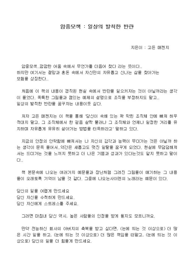 [독후감]암중모색, 일상의 발칙한 반란_고든 매켄지 지음