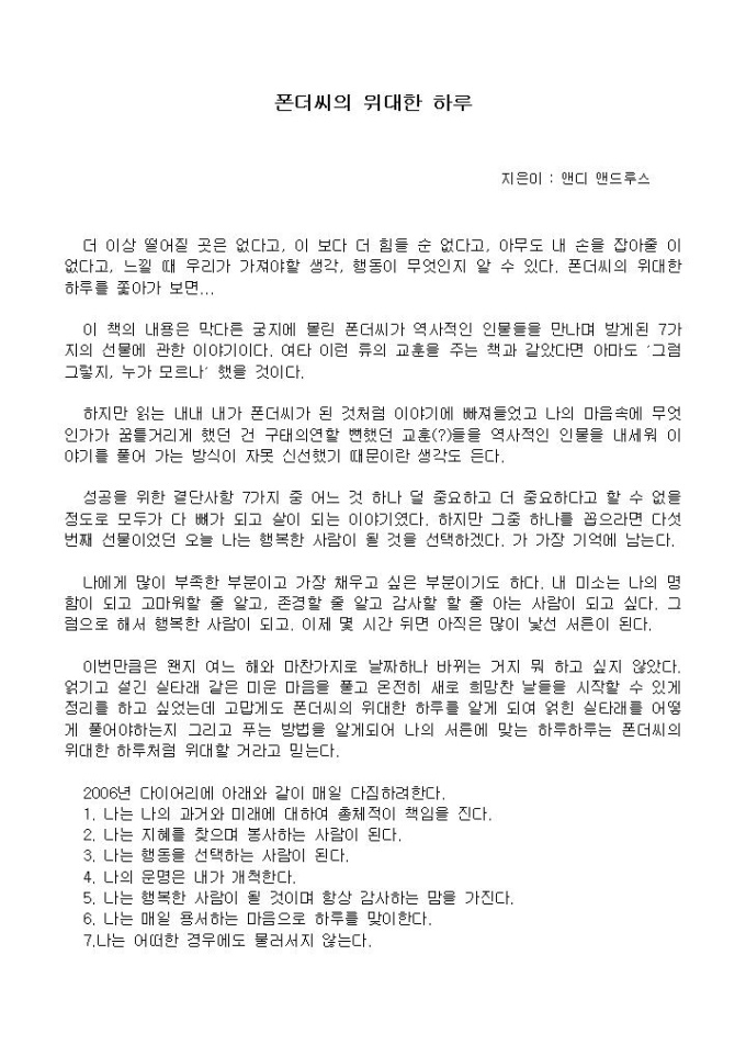 [독후감]2_폰더씨의 위대한 하루_앤디 앤드루스 지음