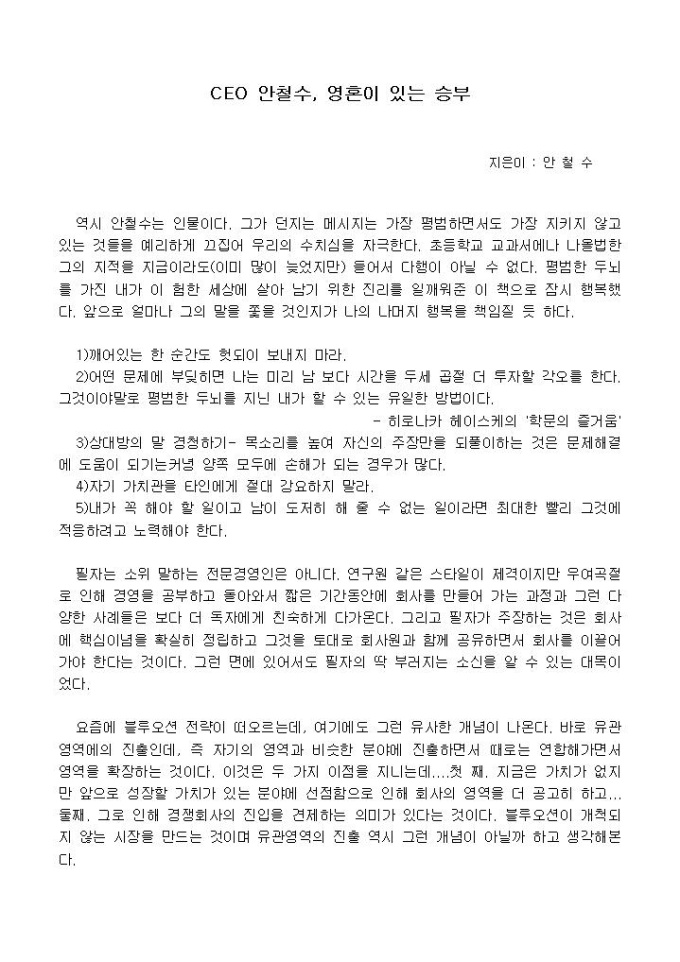[독후감]ceo 안철수 영혼이 있는 승부_안철수 지음