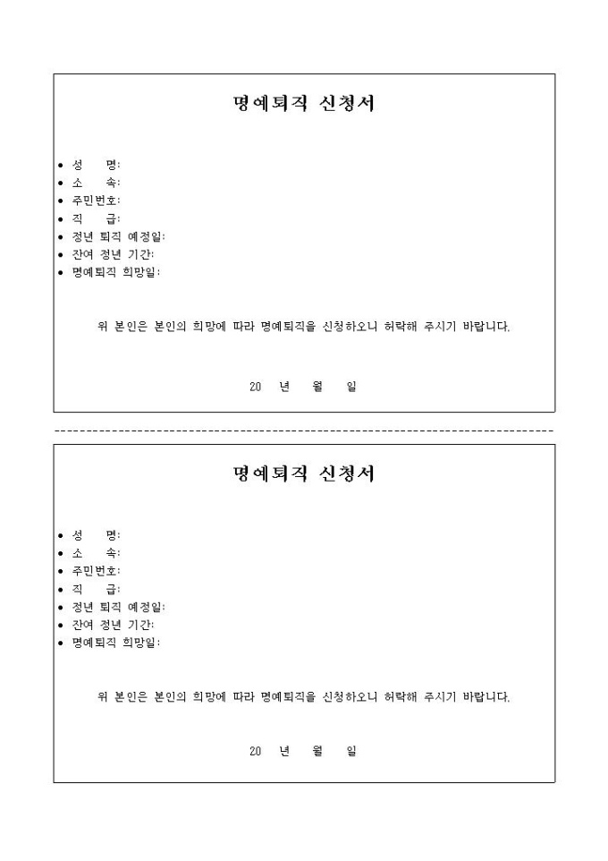 명예퇴직 신청서