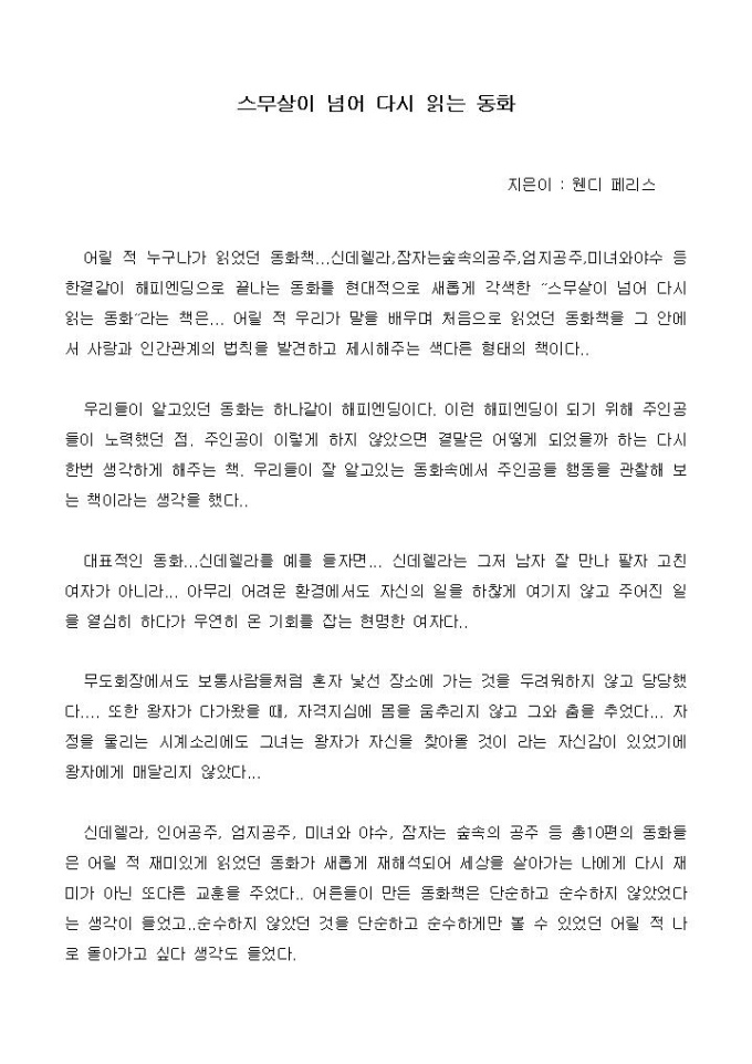 [독후감]2_스무살이 넘어 다시 읽는 동화_웬디 패리스 지음