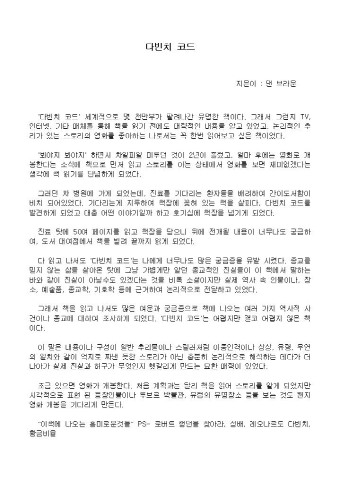 [독후감]5_다빈치 코드_댄 브라운 지음