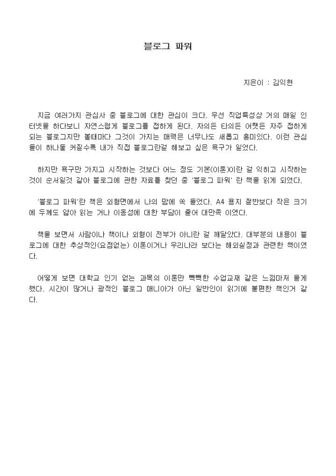 [독후감]블로그 파워_김익현 지음