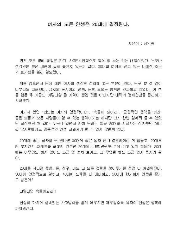 [독후감]여자의 모든 인생은 20대에 결정된다_남인숙 지음