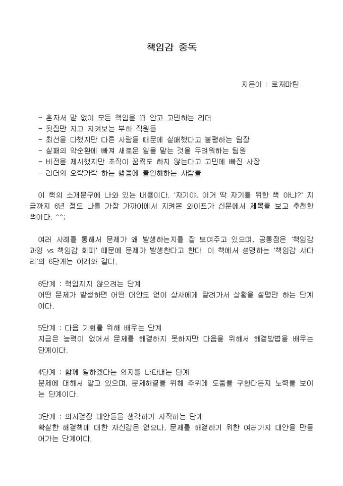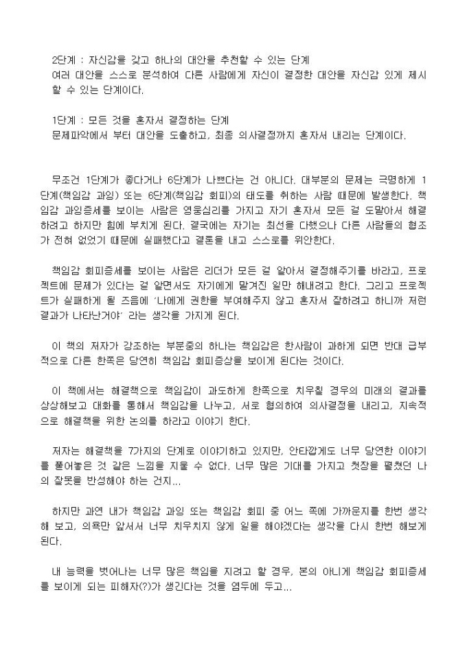 - 혼자서 말 없이 모든 책임을 떠 안고 고민하는 리더