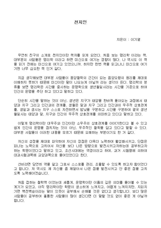 [독후감]천지인_이기열 지음