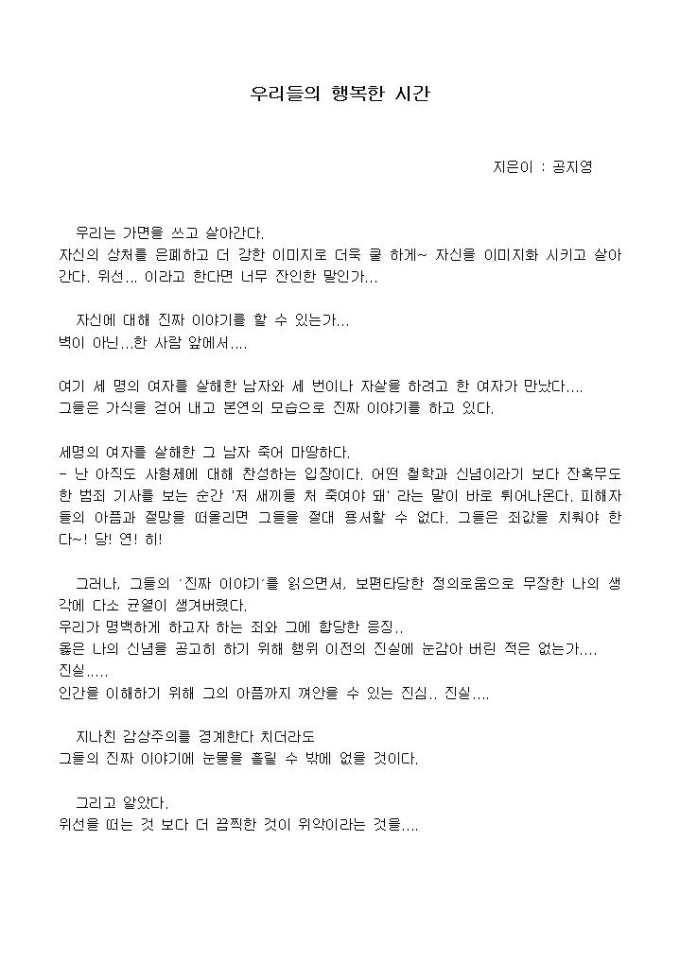 [독후감]2_우리들의 행복한 시간_공지영 지음
