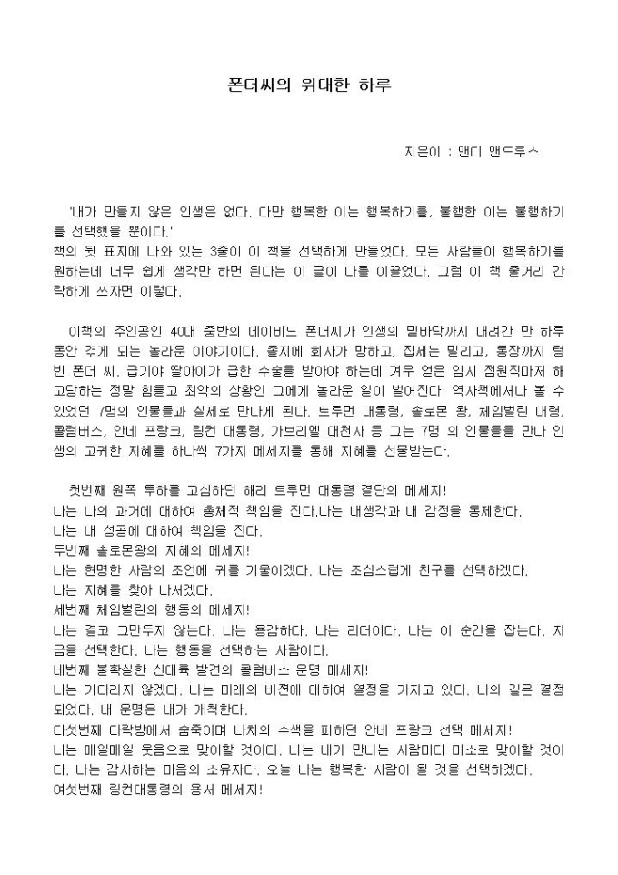 ´내가 만들지 않은 인생은 없다. 다만 행복한 이는 행복하기를, 불행한 이는 불행하기를 선택했을 뿐이다.´