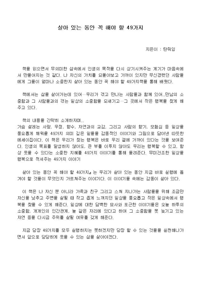 [독후감]5_살아 있는 동안 꼭 해야 할 49가지_탄줘잉 지음