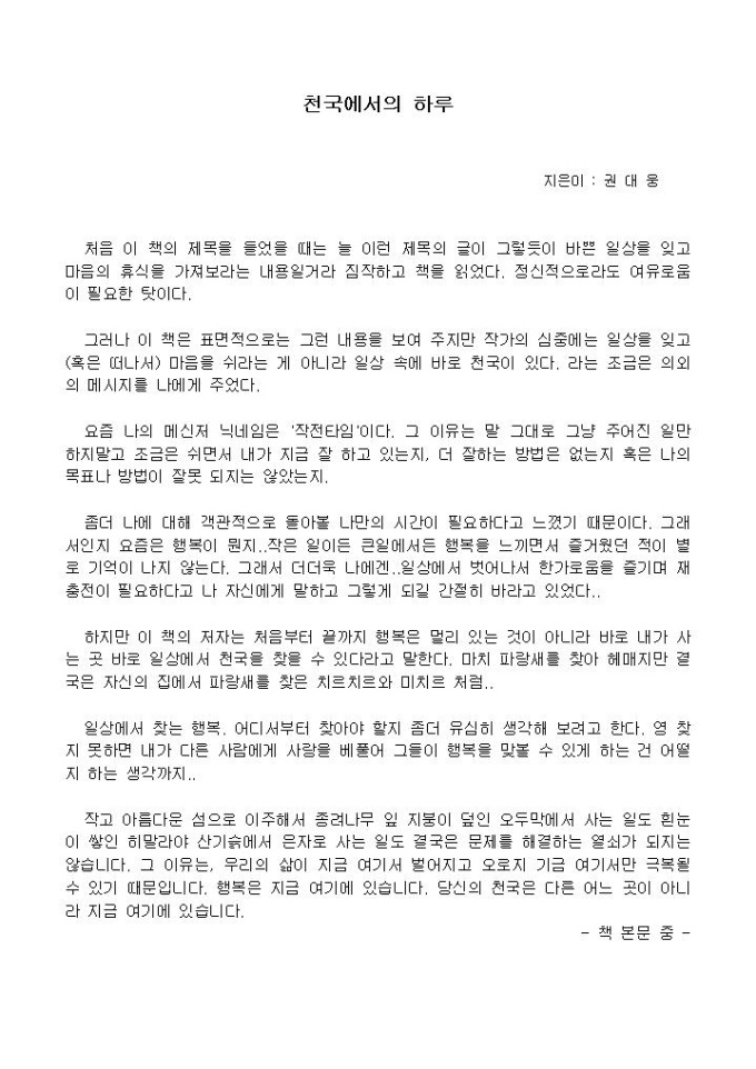 [독후감]천국에서의 하루_권대웅 지음