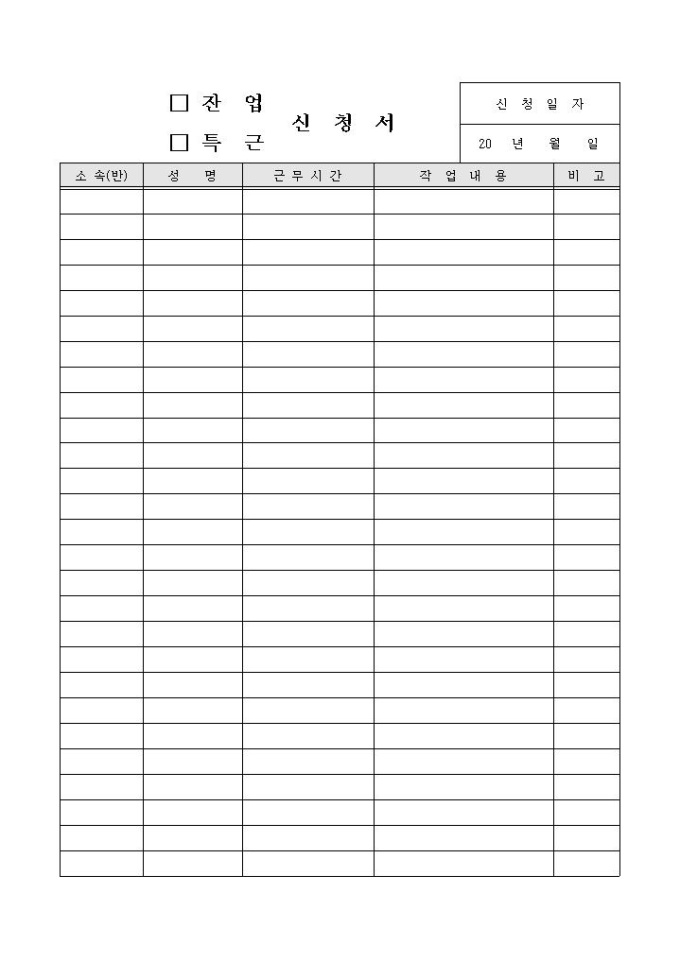 잔업(특근)신청서