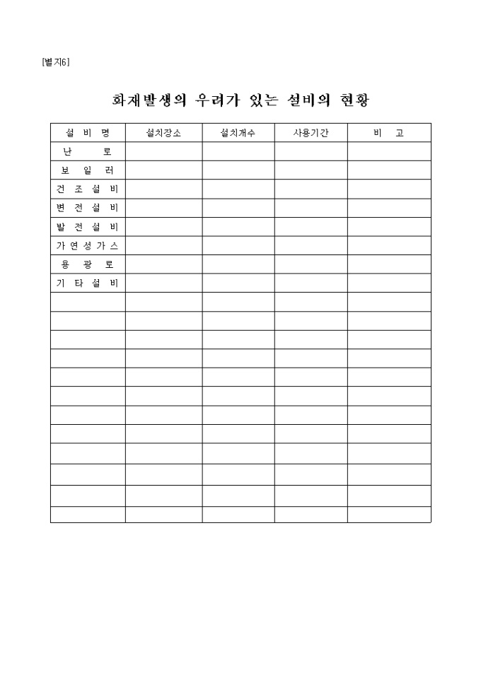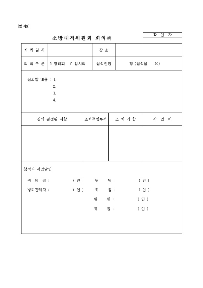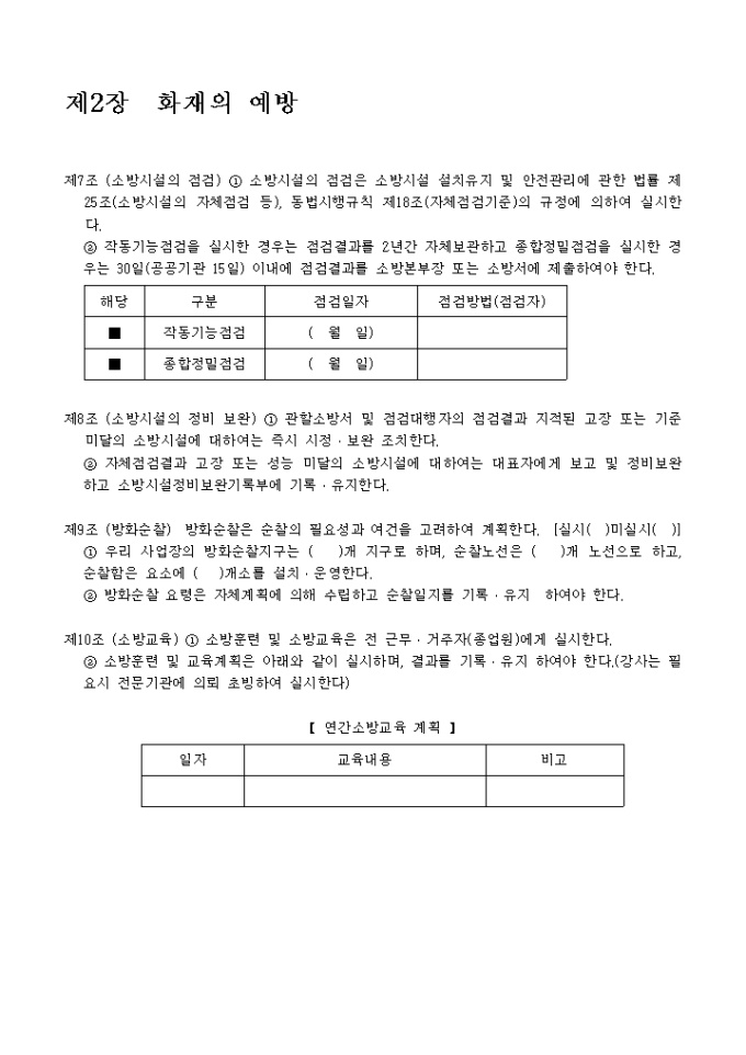 9,000원/월아래의 항목으로 이루어진 소방계획서입니다.