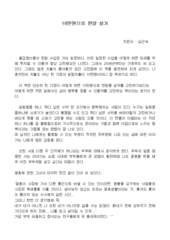 이 책은 단순히 한 가정이 어떻게 하면 10만원으로 한달을 살까를 고민하기보다는