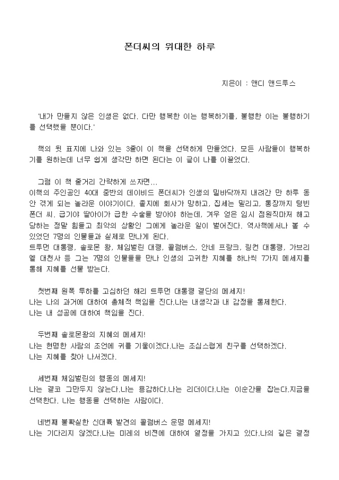 [독후감]6_폰더씨의 위대한 하루_앤디 앤드루스 지음