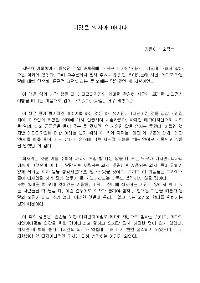 이 책을 읽기 시작 했을 때 메타포디자인의 의미를 확실히 깨닫게 되기를 바라면서 여행을 떠나는 마음으로 읽어 내려갔다.