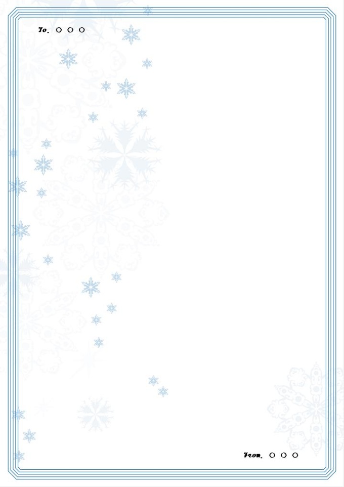 9,000원/월눈 이미지와 청색의 테두리로 구성된 편지지 양식입니다.